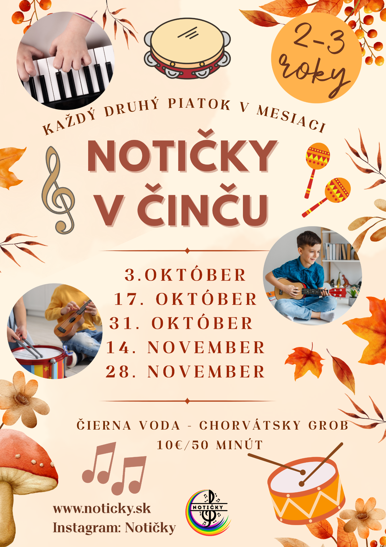 - NOTIČKY MINI (2-3 roky): Spoločné hudobné objavy s rodičom. Prvé rytmy, pohyb a hudobné nástroje